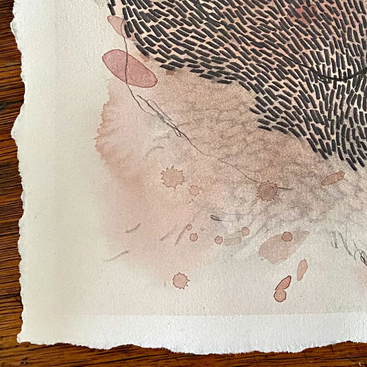 Deliberate Assembly | A Field Study is an exploration into the movement of our surroundings. The abstract works of Field Studies are derived from the mappings and collection of marks from a series of blind contour studies of the crepe myrtles that line the artists’ front garden. The movements showcase themselves through the gestural marks of the blind contour drawings, void of the usual curatorial decisions, and allowed to build naturally, elapsing into a gestural landscape of time + change.